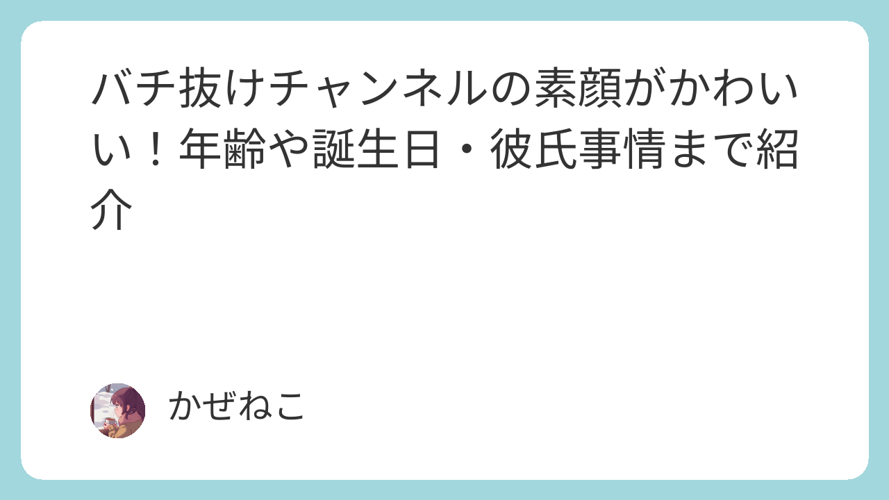 一般的な家庭構成から考えると、バチ抜けさん本人は 30歳前後の可能性が高い と言われています。もちろん確定ではありませんが、この推測はかなり現実的。