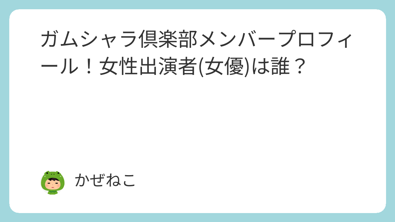 ガムシャラ倶楽部メンバープロフィール!女性出演者(女優)は誰?