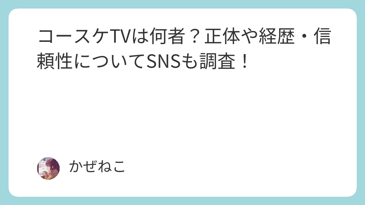 しかし、ネット上では「コースケTVは何者?」「正体がわからない」「信頼できるの?」といった声も散見されます。