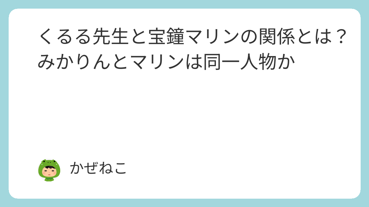 「くるる先生って何者?」「宝鐘マリンと関係あるの?」「みかりんって誰?」