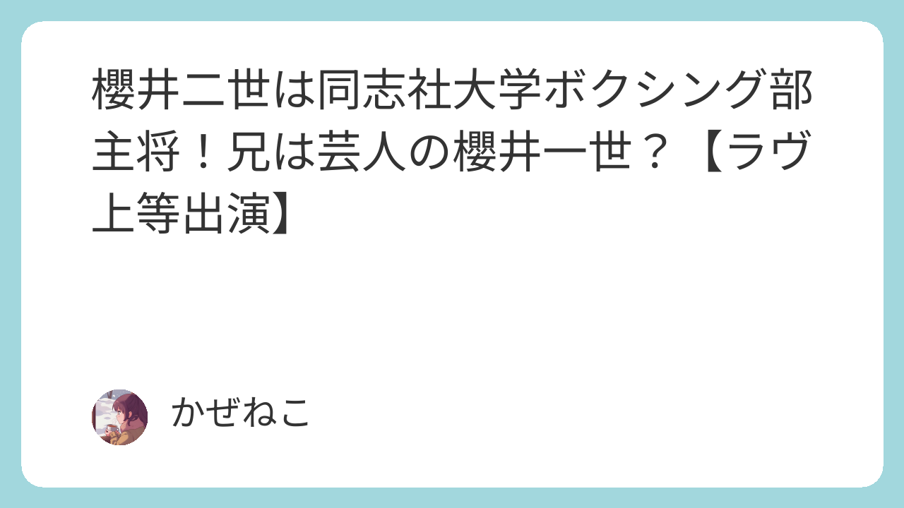 櫻井二世(ラヴ上等)の学歴:同志社大学ではボクシング部主将