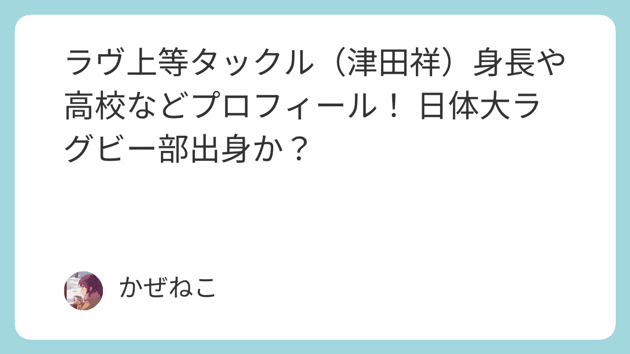 ネット上では、「日本体育大学ラグビー部に“津田祥”という名前の選手がいた」という情報もあり、体格の良さや“タックル”というニックネームも相まって、元ラグビー部説が濃厚とされています。