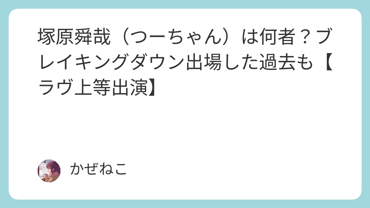 塚原舜哉(つーちゃん)は実はブレイキングダウンの動画に出たことがあるんです。