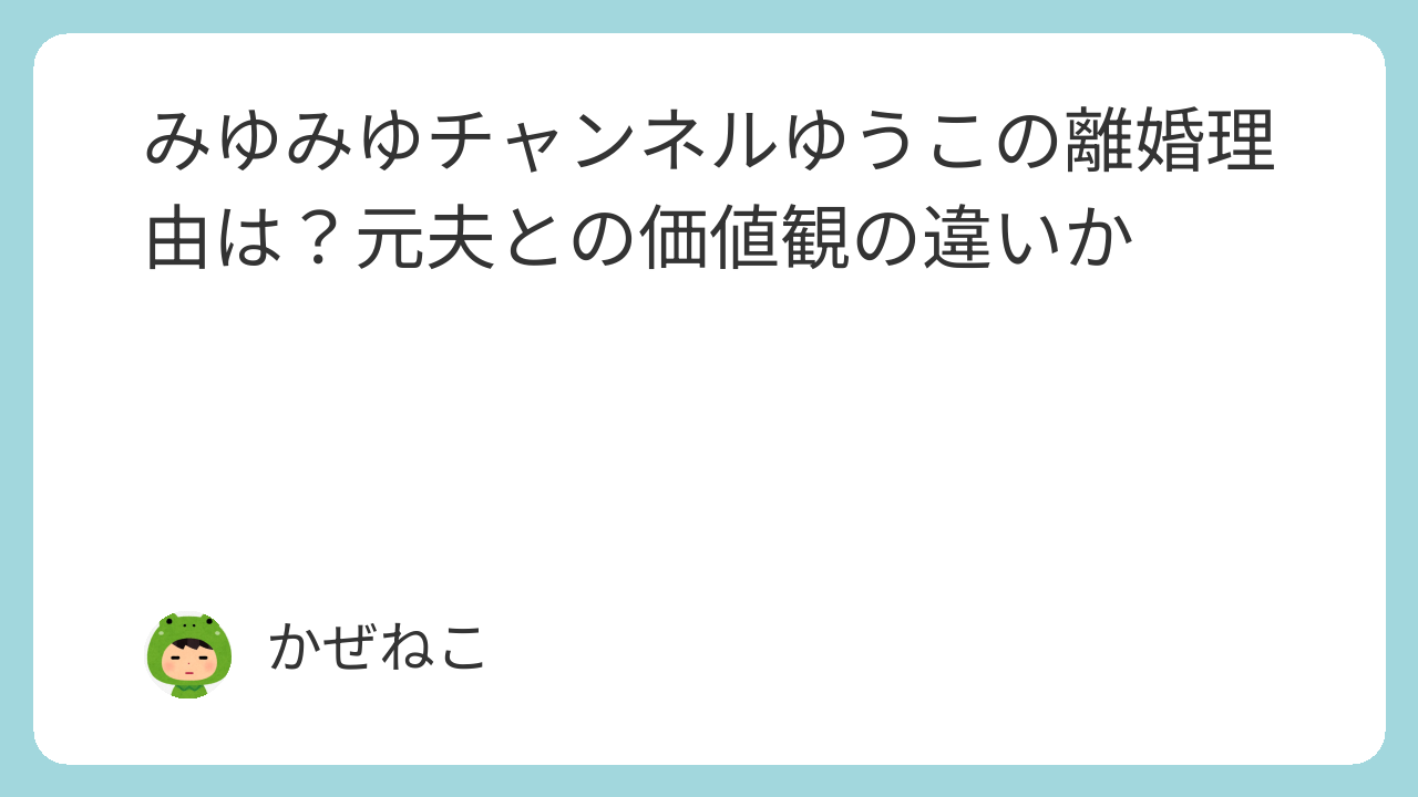 ゆうこさんの離婚理由について、明確な言及はありませんが、これまでの発言や動画から考えると、「価値観の違い」がその根本にあったのではないかと感じられます。