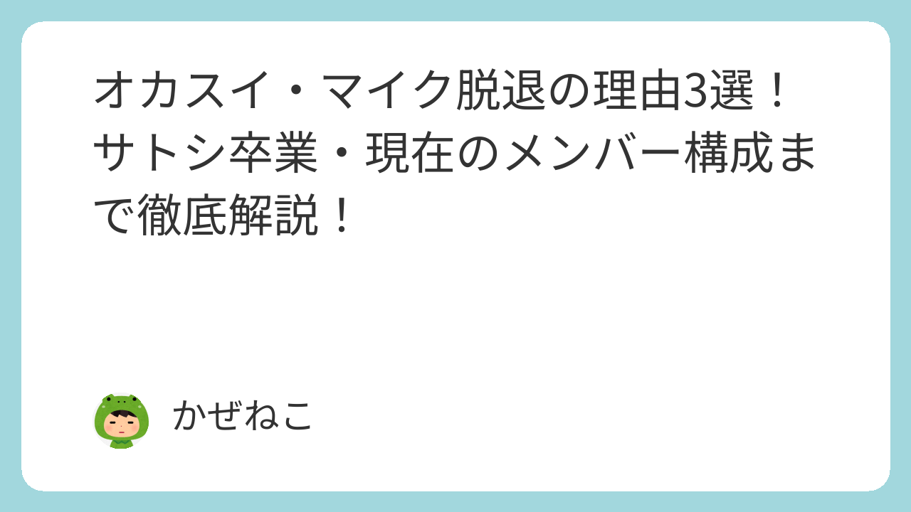オカスイ・マイクの脱退理由3選!サトシ卒業・現在のメンバー構成まで徹底解説!