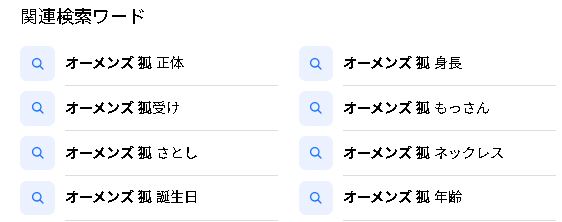 オーメンズ・狐さんの正体は不明なのですが、ネットでは「オーメンズ 狐 もっさん」と言う文字が検索されています。