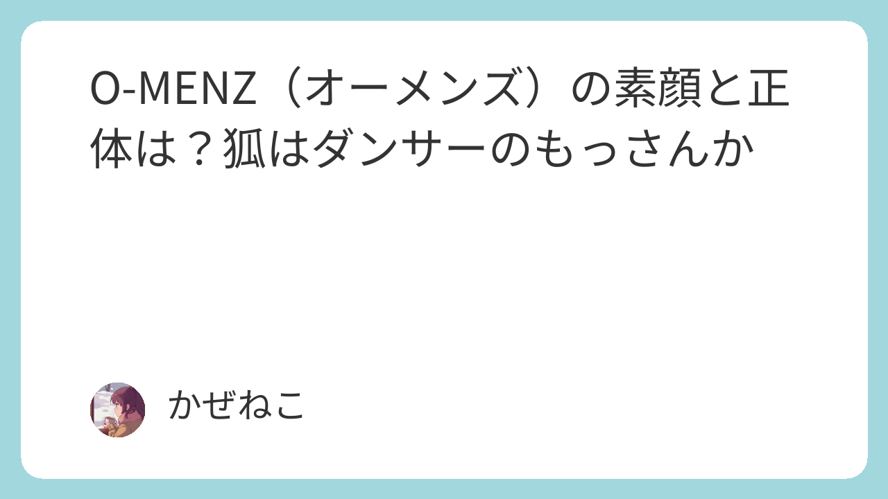 そんなミステリアスなO-MENZメンバーたちの素顔や正体・中の人は誰なのか?