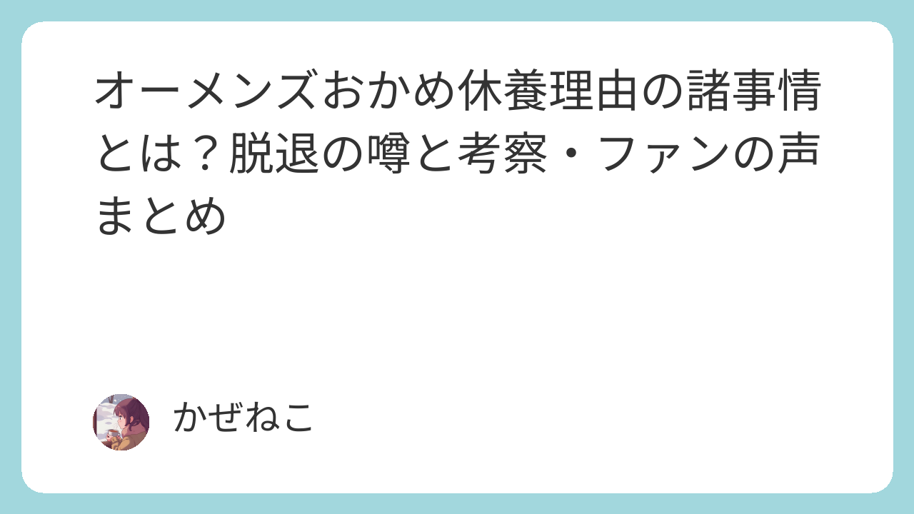 オーメンズ・おかめが休養!理由は諸事情?一体何が起きてる?