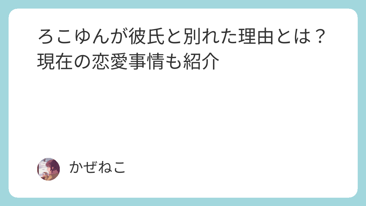 今回はろこゆんさんが彼氏と別れた理由、その時のの素直な気持ちや、今の恋愛観について、本人の動画や発言をもとに、共感を込めてお伝えします。