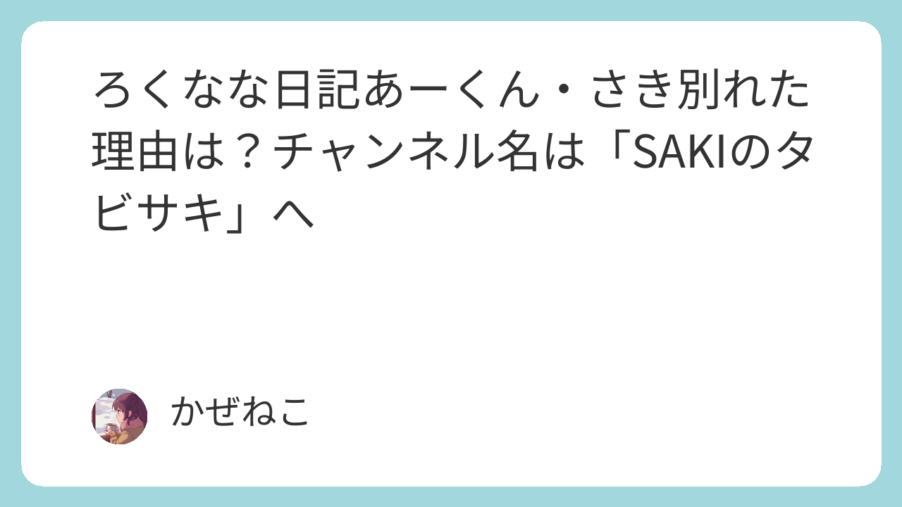 ろくなな日記あーくん・さき別れた理由は?チャンネル名は「SAKIのタビサキ」へ