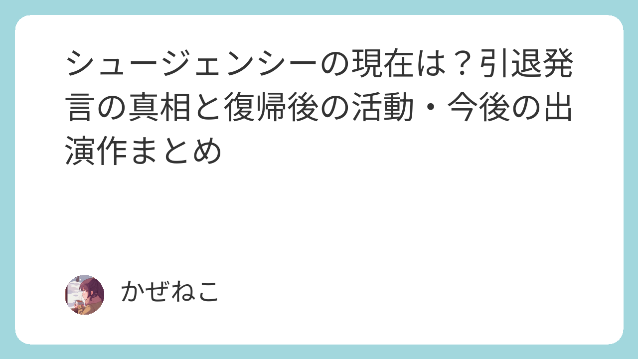 今回はそんなシュージェンシーさんの現在の活動、復帰作『百花殺』、そして引退の真相と心境の変化について、ファン目線でわかりやすくお届けします!