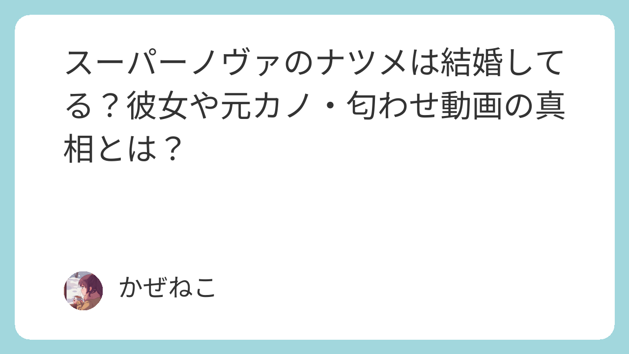 この記事では、ナツメさんの結婚・元カノ疑惑について、動画内容やSNSの投稿、本人の言葉をもとにわかりやすく解説していきます。真相を知って、モヤモヤをスッキリさせましょう!