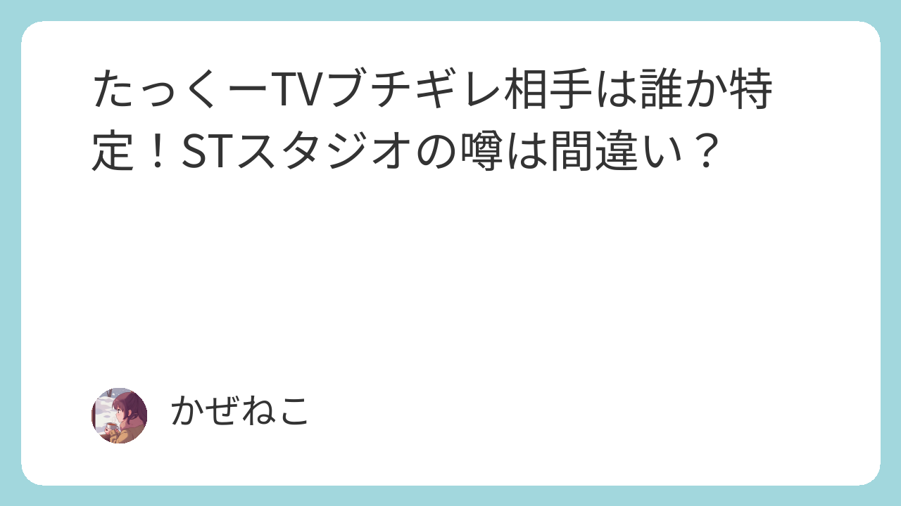 たっくーTVブチギレ相手は誰か特定!STスタジオの噂は間違い?