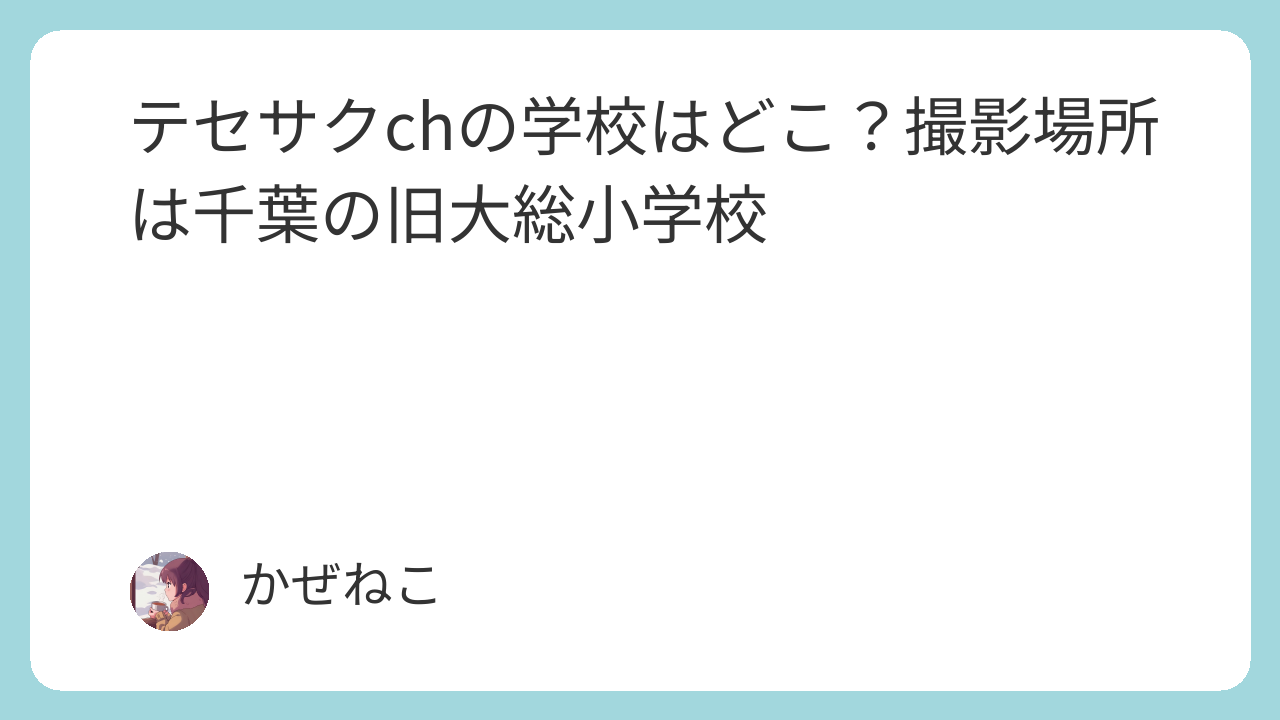 テセサクchの舞台、あのリアルすぎる学校のシーン。気になって調べてみた方、多いのではないでしょうか?実はあの学校、実在するんです。しかも、すでに廃校になっている元・小学校。その名も「旧大総小学校(きゅう たいそう しょうがっこう)」。