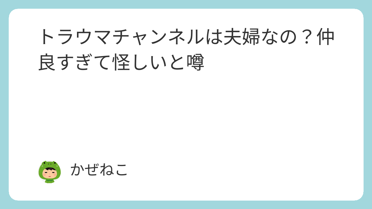 トラウマチャンネル夫婦説がなぜ出ているのか?